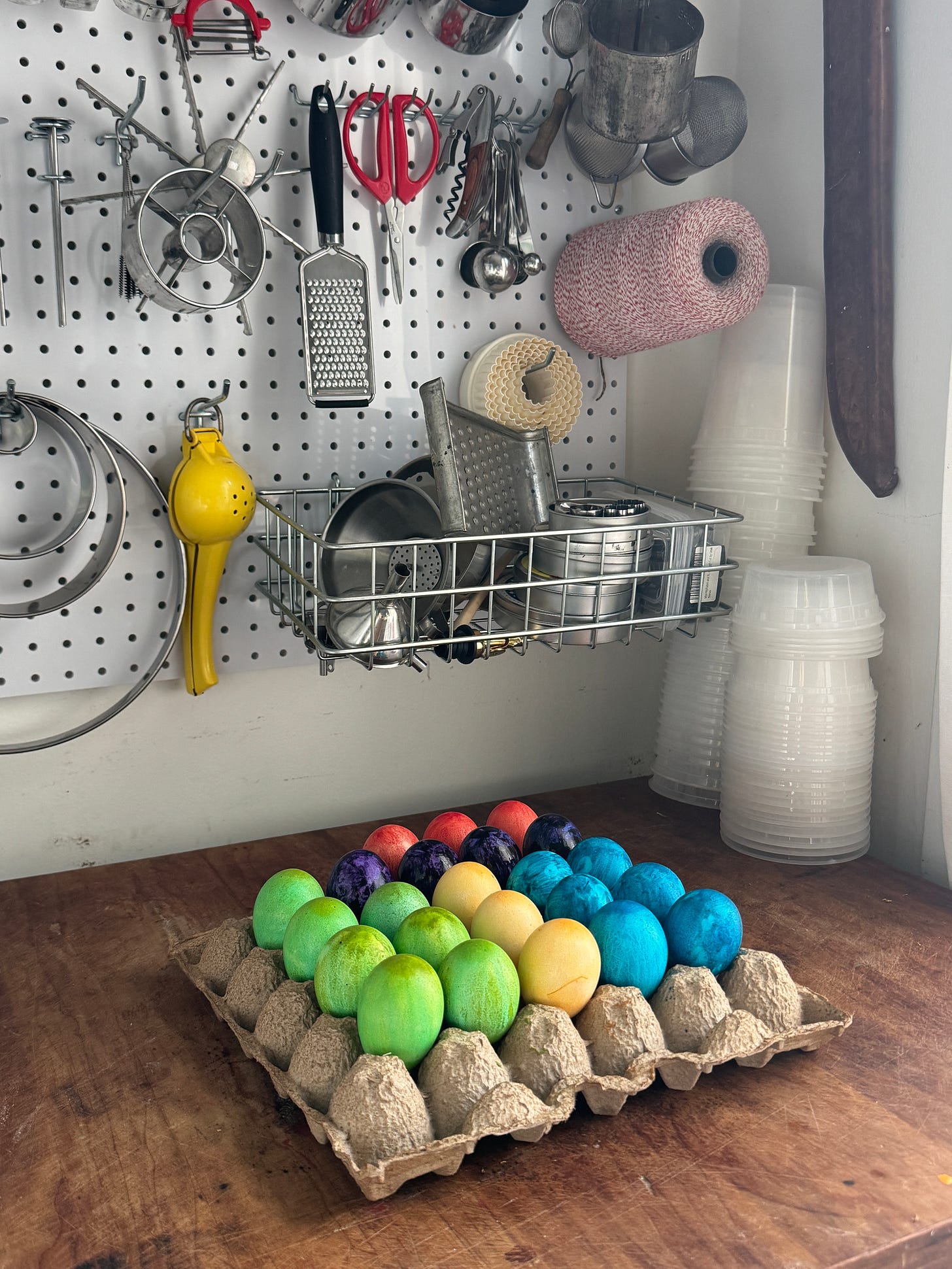 I recently demoed this on CBS Los Angeles and had so much fun walking the anchors through the dough — stretching, twisting, and shaping together just like play doh! If you have kids, recruit them to help dye the eggs and twist some wreaths. My toddler enjoyed all the colors!